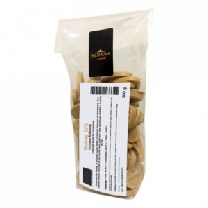 Dulcey 32% blond chocolate beans, Gourmet Creation. Pure cocoa butter Creamy and Toasty. Dulcey is a smooth, creamy chocolate with a velvety and enveloping texture and a warm, golden color. The first notes are buttery, toasty and not too sweet, gradually giving way to the flavors of freshly-baked shortbread with a pinch of salt.