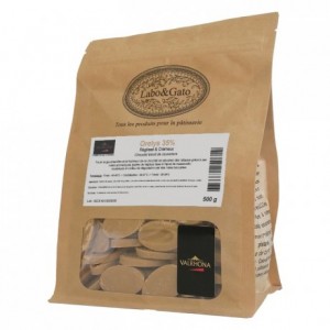 Dulcey 35% blond chocolate beans, Gourmet Creation. Pure cocoa butter Creamy and Toasty. Dulcey is a smooth, creamy chocolate with a velvety and enveloping texture and a warm, golden color. The first notes are buttery, toasty and not too sweet, gradually giving way to the flavors of freshly-baked shortbread with a pinch of salt. Repackaging by...