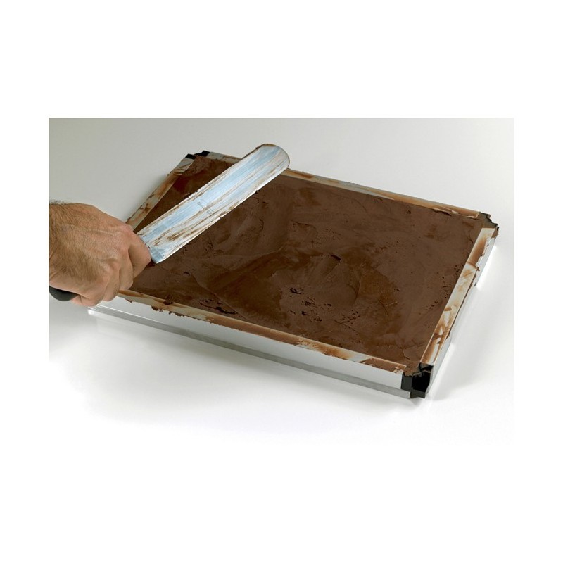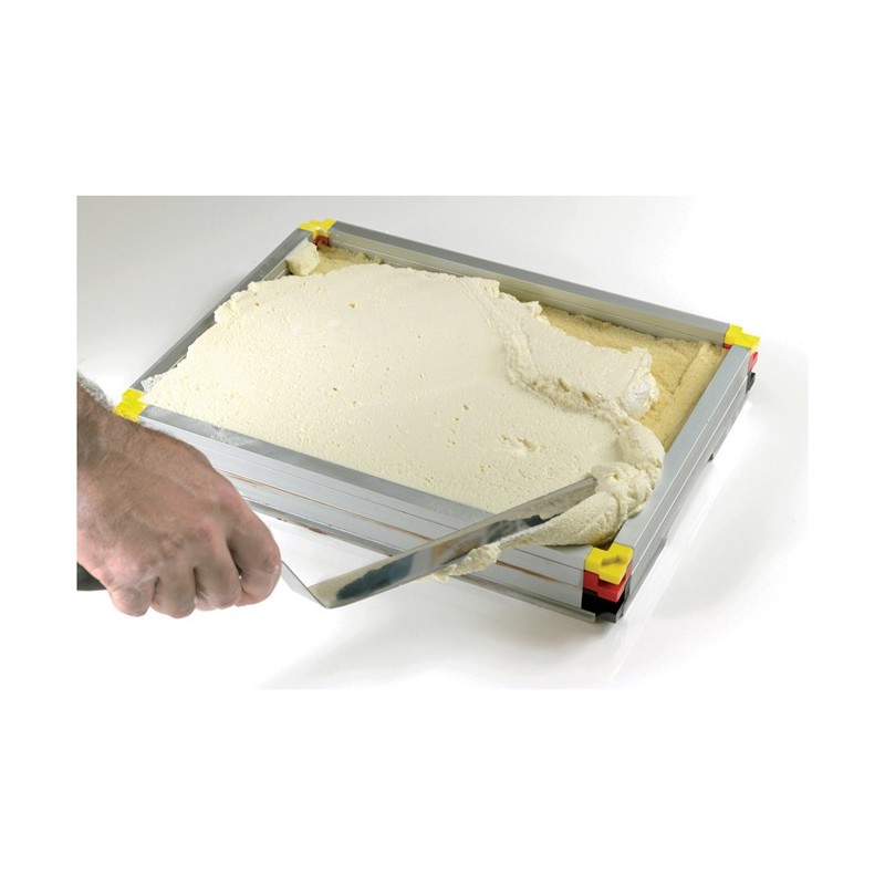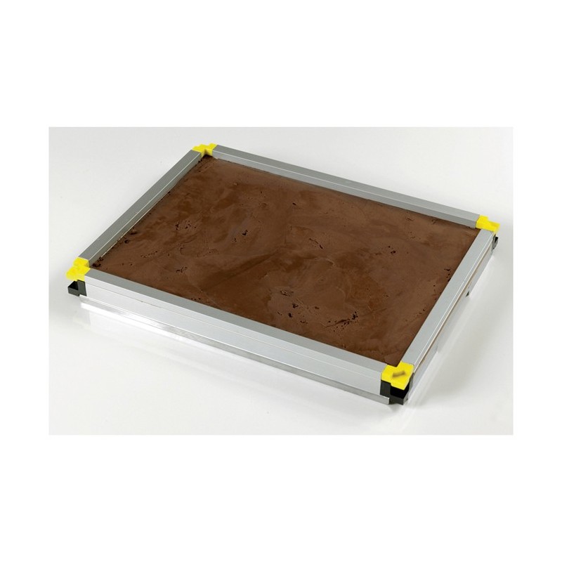 - the frames 350 x 350 mm are specially designed for making ganache, praline and fruit jelly sheets which can be cut in the guitar shape without wasting any product.