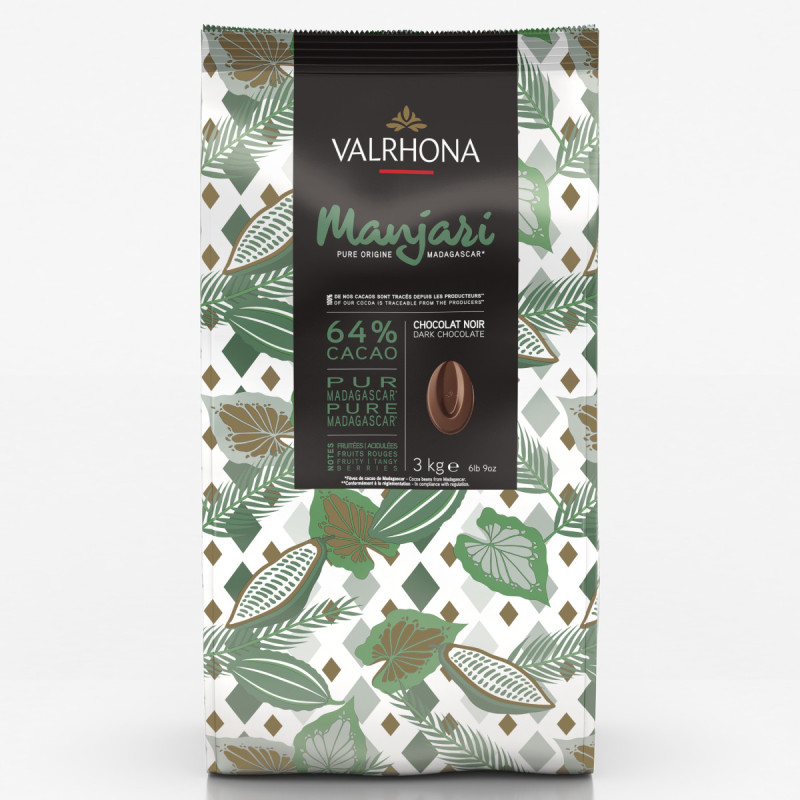 Fèves de chocolat noir Valrhona Manjari 64% de cacao, Grand Cru Madagascar.