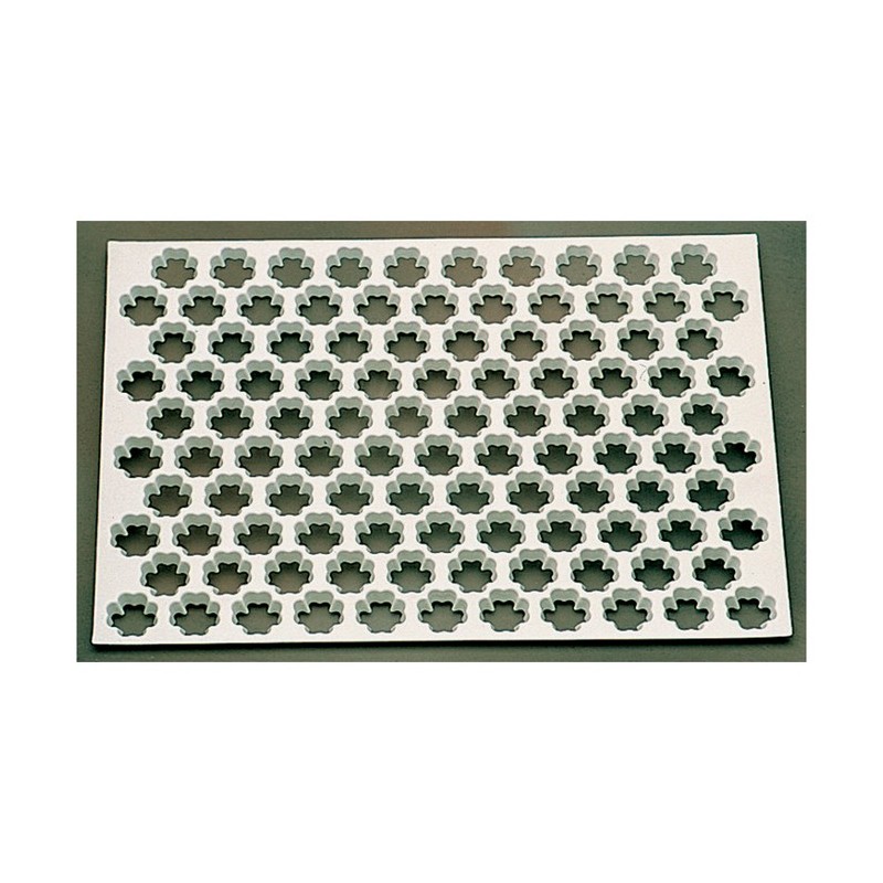 Plaque de découpoirs qui permettent de réaliser facilement et rapidement des découpes de pâte. Ces découpes peuvent servir à fabriquer des sablés, des biscuits, des fonds de petits fours… à découper directement sur les plaques à four pour cuisson pour gagner du temps.