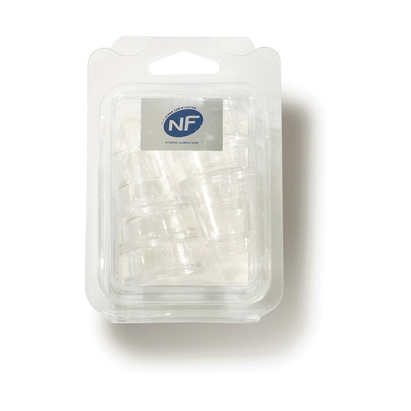 Boite de 6 douilles unies en copolyester (en remplacement du polycarbonate, sans PFOA).