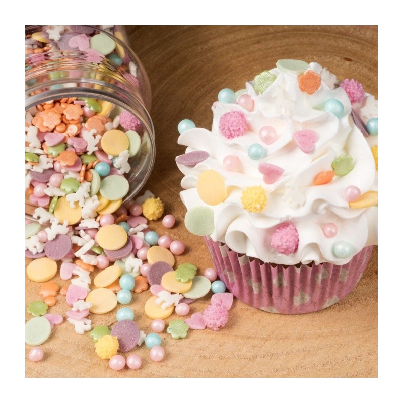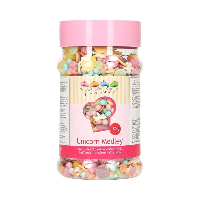 Qui n'aime pas les licornes ? Grâce à ce fantastique Sprinkle Mix de FunCakes, vous pouvez facilement décorer cupcakes et plus avec un thème de licorne. Ce Mix est composé de toutes sortes de magnifiques flocons colorés et, bien sûr, de licornes.